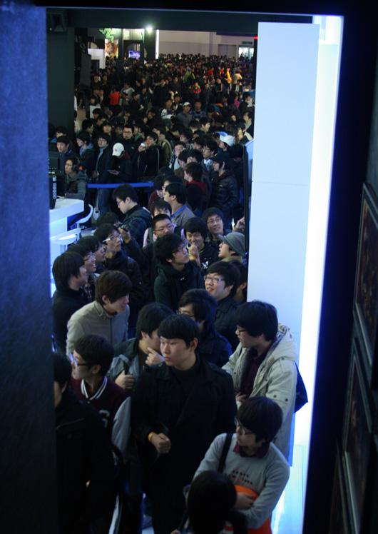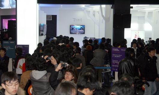 It looks like the Korean gaming crowd currently has the hots for Hangame’s upcoming action MMO epic, TERA. As early as 10.30am, the queue at all the demo booths were already snaking a long way out into the halls (see images below). TERA, developed by Bludeside Studios, has garnered many positive reviews since its Closed Beta started in Korea a few months back. With the several versions already confirmed, including North America and Europe, TERA is set to revolutionize the MMO genre in 2011!